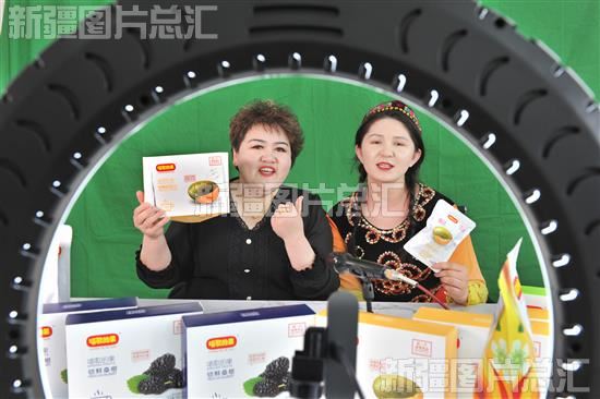 2023年3月21日,新疆唱歌的果食品股份有限公司员工在直播销售产品。