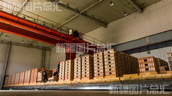 2023年3月10日,新疆博乐市鄂港口新型建材有限公司员工在生产车间作业。