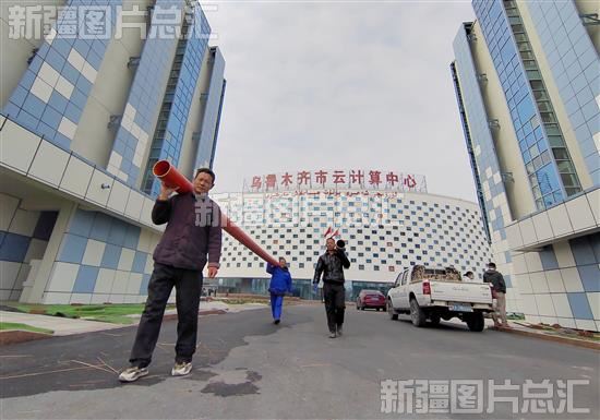 2023年3月15日,工作人员在乌鲁木齐市云计算中心二期项目工地施工。
