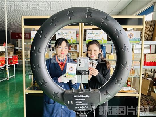 2023年3月28日,新疆蜜姐黑蜂有限公司员工通过网络直播销售蜂蜜。