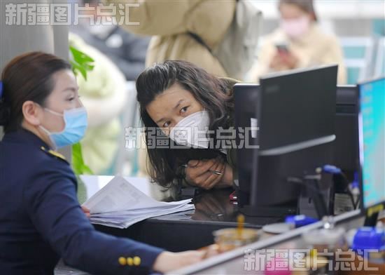 2023年2月23日,市民在乌鲁木齐高新区(新市区)政务服务中心大厅市场监督管理局柜台办理业务。