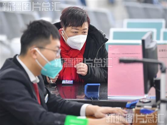 2023年2月23日,市民在乌鲁木齐高新区(新市区)政务服务中心大厅市场监督管理局柜台办理业务。