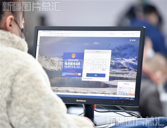 2023年2月23日,市民在乌鲁木齐高新区(新市区)政务服务中心大厅市场监督管理局柜台自助服务区办理业务。