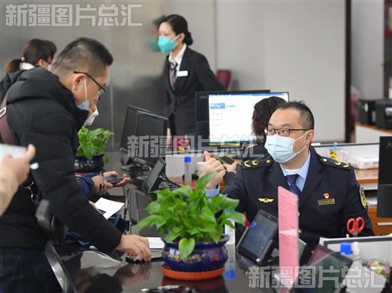2023年2月23日,市民在乌鲁木齐高新区(新市区)政务服务中心大厅市场监督管理局柜台办理业务。