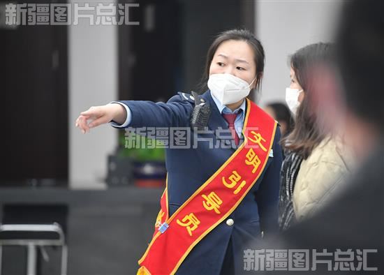 2023年2月23日,乌鲁木齐高新区(新市区)政务服务中心大厅工作人员引导市民去市场监督管理局柜台办理业务。