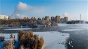 雾气飘渺天鹅嬉水 和谐自然美成仙境