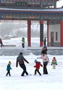 游客在瑶池园内赏雪景