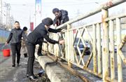 志愿者擦洗护栏