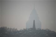 宝塔映高楼 雾霾天有所缓解