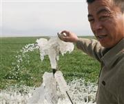 农工清除喷灌管上的积冰