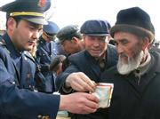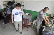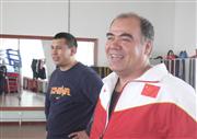 新疆拳击队总教练阿布力克木·阿不都热西提在训练场指导