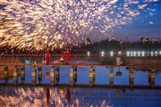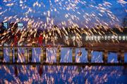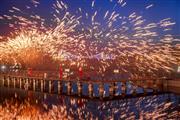 新疆昌吉市:非遗“打铁花” 点亮假期夜生活